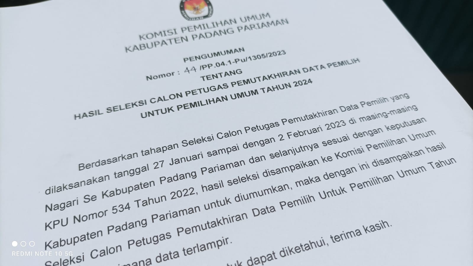 Berikut kami sampaikan Hasil Seleksi Calon Petugas Pemutakhiran Data Pemilih (Pantarlih) untuk Pemilu Tahun 2024 Se-Kabupaten Padang Pariaman