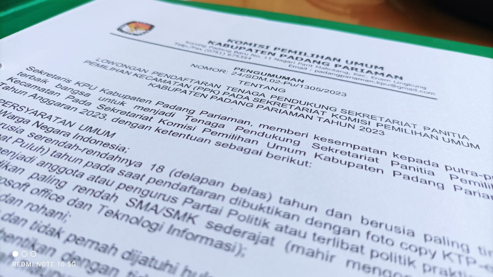 Sekretaris KPU Kabupaten Padang Pariaman, memberikan kesempatan kepada putra-putri terbaik bangsa untuk menjadi Tenaga Pendukung Sekretariat Panitia Pemilihan Kecamatan pada Sekretariat KPU Kabupaten Padang Pariaman tahun anggaran 2023