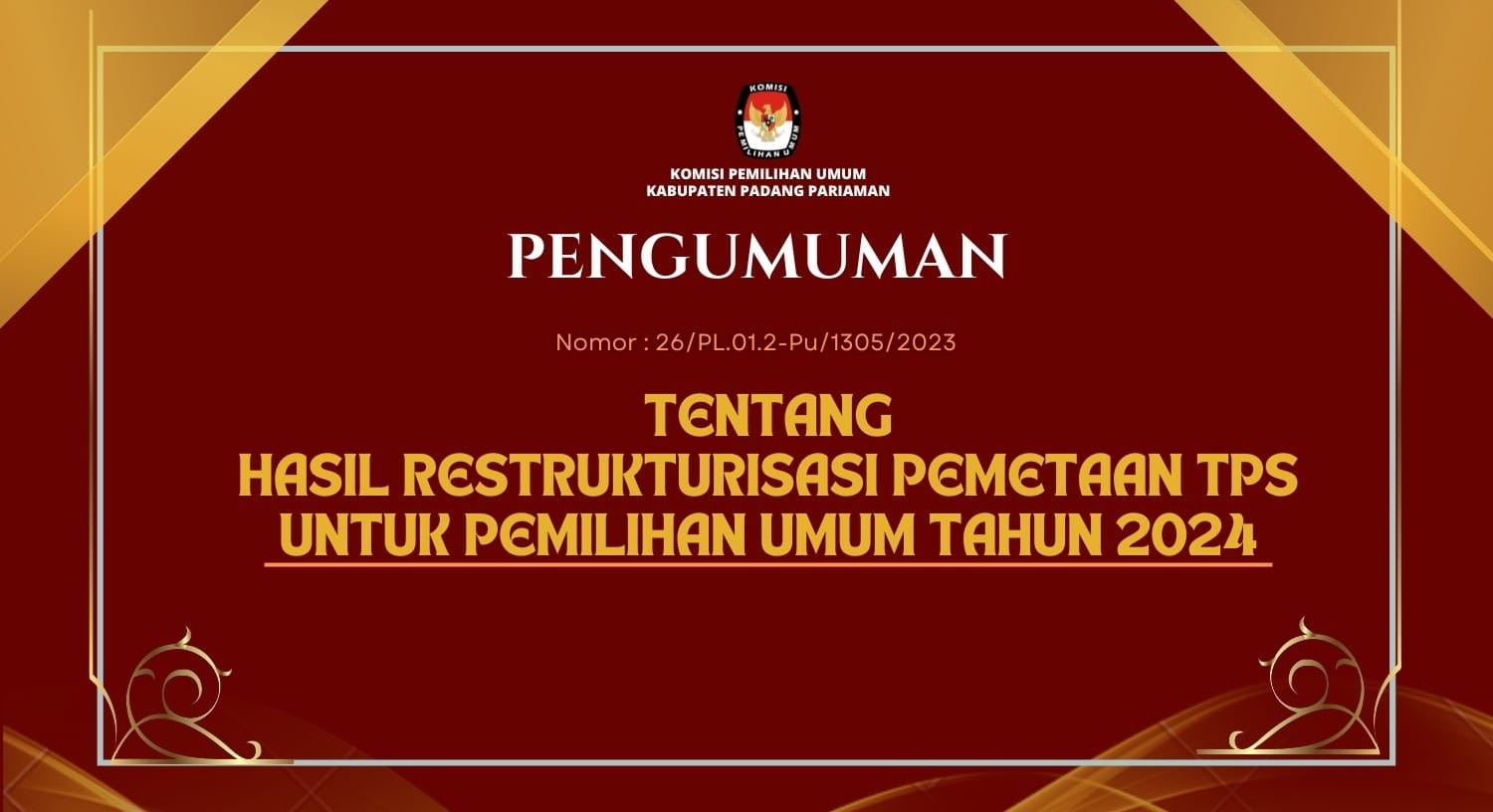 Pengumuman Nomor : 26/PL.01.2-Pu/1305/2023 tentang Hasil Restrukturisasi Pemetaan TPS Jumat, 10 Februari 2023 12:20 649 Pengumuman Lengkap Silahkan Download Disini Bagikan: Dilihat 649 Kali.