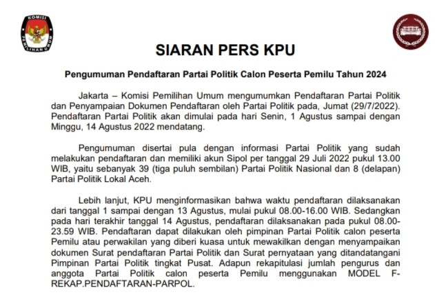 Hai #SahabatPemilih sesuai dengan ketentuan Pasal 182 huruf p dan Pasal 183 Undang-Undang Nomor 7 Tahun 2017 tentang Pemilihan Umum, bakal calon perseorangan Peserta Pemilu anggota DPD dipersyaratkan mendapatkan dukungan minimal dari pemilih di daerah pemilihan yang bersangkutan. Untuk memudahkan bakal calon perseorangan Peserta Pemilu anggota DPD tahun 2024, formulir yang digunakan untuk daftar pendukung bakal calon perseorangan peserta Pemilu DPD Tahun 2024 masih menggunakan template formulir pemilu sebelumnya dengan beberapa penyesuaian, salah satunya adalah tidak dibubuhi meterai. Template formulir dapat diunduh di laman KPU, serta bisa disesuaikan atau diperbanyak sesuai dengan kebutuhan. Daftar pendukung disertai dengan tanda tangan atau cap jari pendukung. Daftar identitas pendukung akan diinput oleh bakal calon perseorangan peserta pemilu anggota DPD ke dalam aplikasi Sistem Informasi Pencalonan dengan ketentuan yang akan disampaikan kemudian. Untuk informasi lebih lanjut dapat menghubungi KPU Kabupaten Padang Pariaman Klik disini untuk unduh formulir https://kab-padangpariaman.kpu.go.id/public/kab-padangpariaman/dmdocuments/16672099831667001293Template_MODEL F1-PERNYATAAN.DUKUNGAN.DPD (upload web) (1).pdf