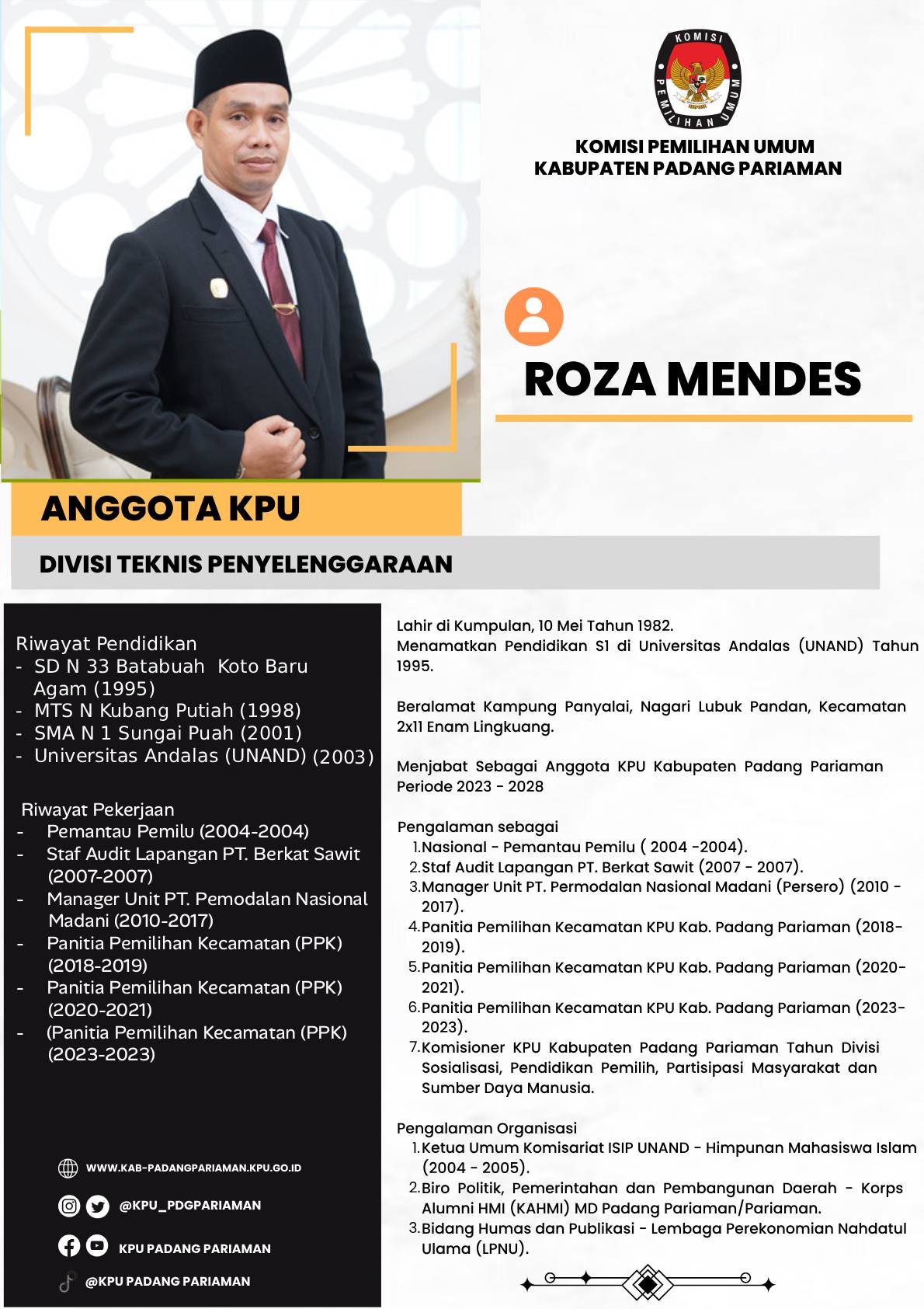 Profil Anggota KPU Kabupaten Padang Pariaman