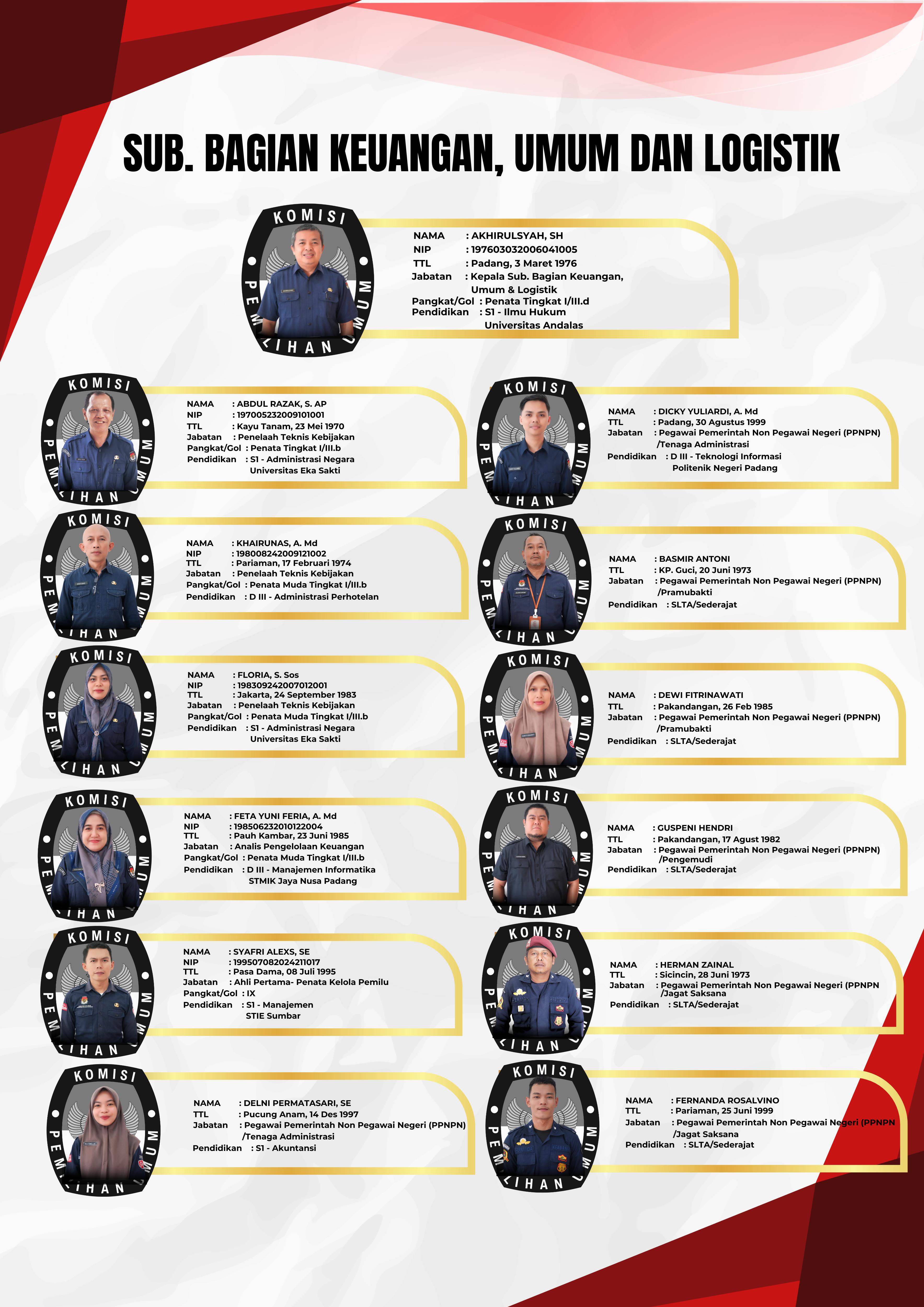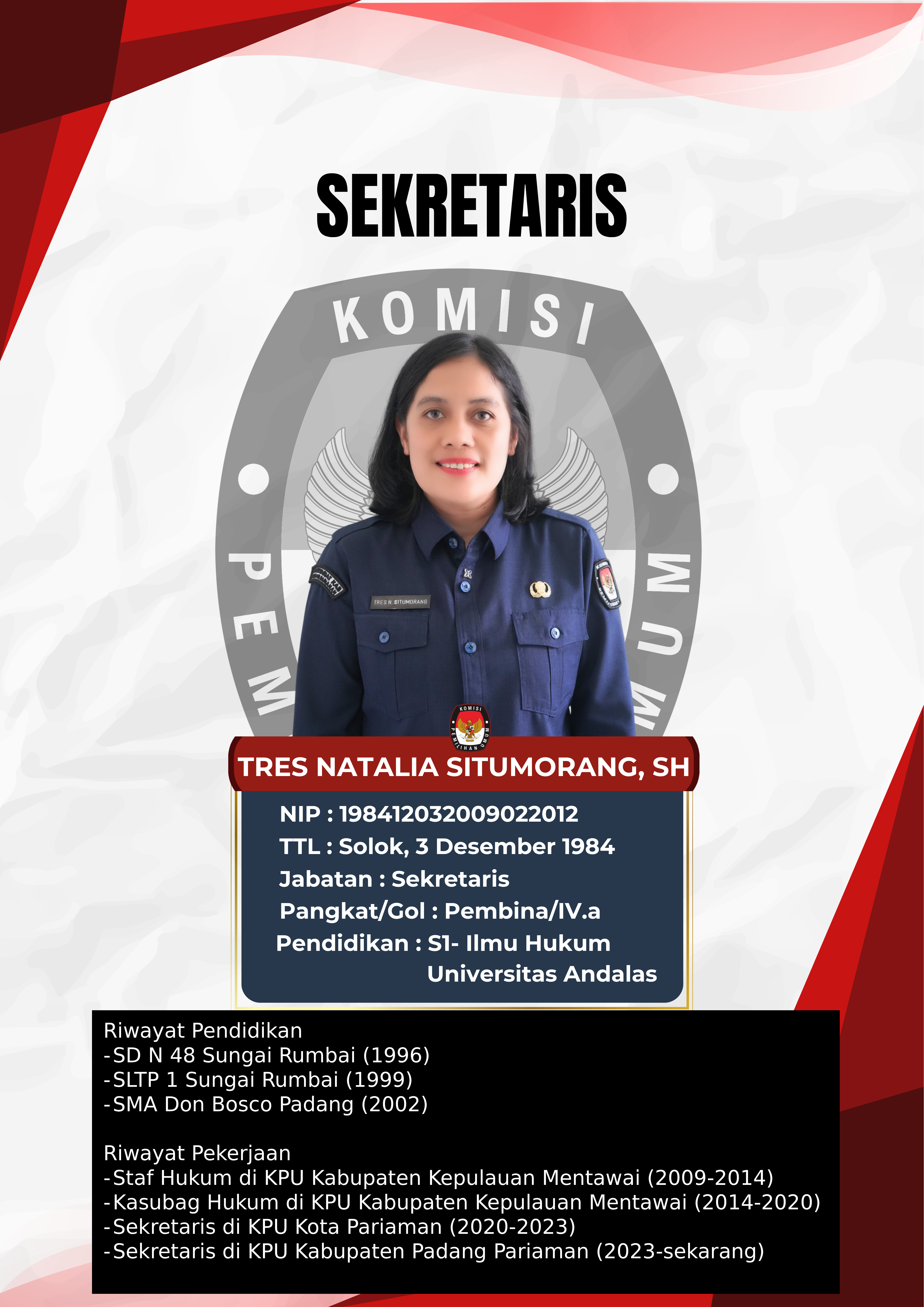 PROFIL SEKRETARIAT KOMISI PEMILIHAN UMUM KABUPATEN PADANG PARIAMAN 1. SEKRETARIS 2. SUBBAGIAN PERENCANAAN, DATA DAN INFORMASI 3. SUBBAGIAN PARTISIPASI HUBUNGAN MASYARAKAT DAN SDM 4. SUBBAGIAN TEKNIS & HUKUM 5. SUBBAGIAN KEUANGAN, UMUM DAN LOGISTIK 6. FUNGSIONAL Bagikan : Dilihat 467 Kali.
